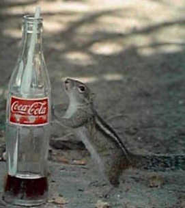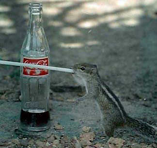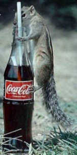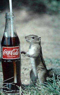 ![]() | This scrawny squirrel likes using a straw to sip Coca-Cola from a bottle. Of course, not all squirrels are good at this... |